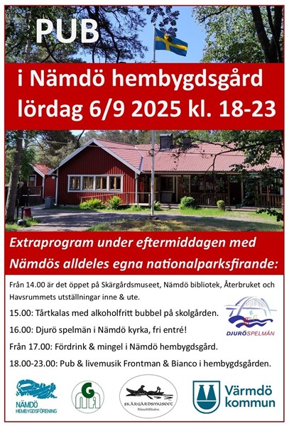 18.00-23.00 Pub med livemusik Frontman & Bianco i Nämdö hembygdsgård.