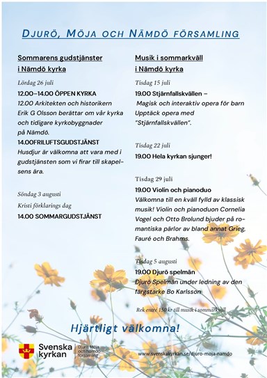 - Samma program i Möja kyrka torsdag 17 juli kl 19-20