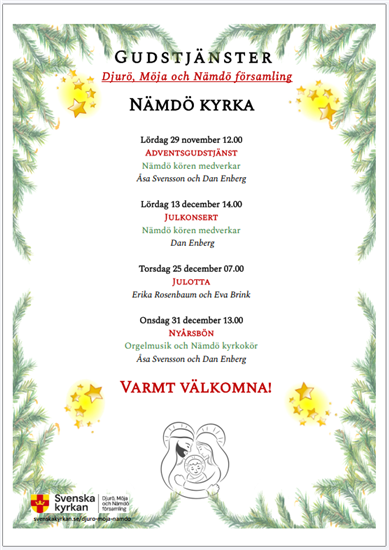 - Julkonsert med Nämdökören inder ledning av kantor Dan Enberg